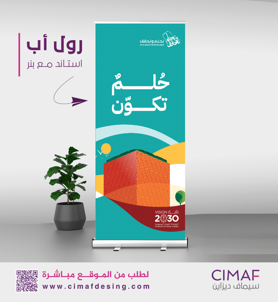 تصميم وطباعه بنر رول اب ستاند شامل الطباعه والتصميم والاستاند . بشعار وهوية اليوم الوطني السعودي 94 .. بسعر مخفض الان